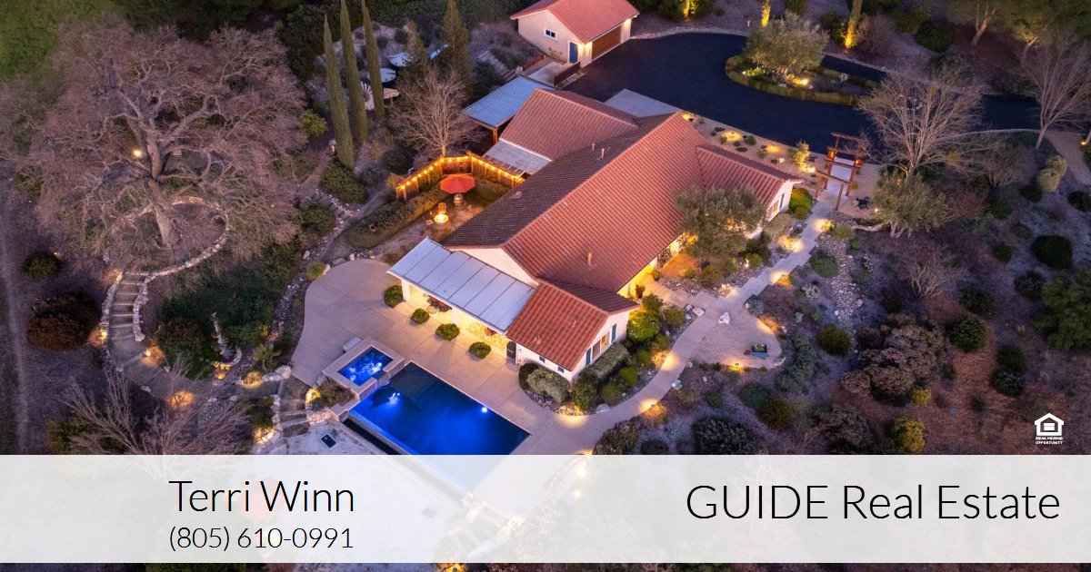 Welcome to Casa de Robles in the highly desirable Spanish Camp area of Paso Robles, an extraordinary private retreat set on seven gently rolling, fully deer-fenced acres behind an electronic gate with a circular driveway. This beautifully remodeled estate, which is just minutes to charming downtown, blends modern efficiency with refined luxury and offers unforgettable sweeping views. Entering this single-level home you will love the vaulted exposed wood ceilings, tile floors, a custom barn door which artfully hides the included TV, and a custom Mendota fireplace with real Adelaida stone. Notably there are no stairs or steps into or out of the home. A fully owned solar system, newer HVAC, high production well, and cleared septic and pest inspections offer true peace of mind. The stunning chef kitchen features live-edge stone countertops, double ovens, open shelving, a walk-in pantry, dedicated coffee station, and an impressive 132-bottle Sub-Zero wine refrigerator, creating the perfect space for entertaining. The spacious primary suite is a serene escape with a spa-inspired bath and expansive walk-in closet, while a whole-house Hague water filtration system enhances everyday living. Each bedroom has a dedicated bathroom. Outdoors, the infinity-edge pool with spa spillover takes center stage, complete with electronic child safety barrier and both gas and passive solar heating options and situated perfectly to take in the stunning view and is just steps away from the covered patio with electronic awning and fans. Ideal for hobbyists or collectors, the property which has covered parking for 5 vehicles plus RV, includes a 2½-car attached garage with polyaspartic flooring and custom storage, a detached two-car shop with heat and air and a dust collection system, and a substantial steel RV building with its own private access road and gated entry. Garden enthusiasts will appreciate ten raised beds, pergola, fire bowl, low-v landscape lighting, bocce ball area, a massive garden shed with sink and work stations, and the thoughtfully designed landscaping with auto-drip along with majestic oak trees, while charming touches like a vintage 1960 Shasta trailer playhouse and landscape art adds character and warmth to this truly one-of-a-kind Paso Robles estate. No HOA.Contact Terri Winn of GUIDE Real Estate at 805-610-0991 for a private viewing.