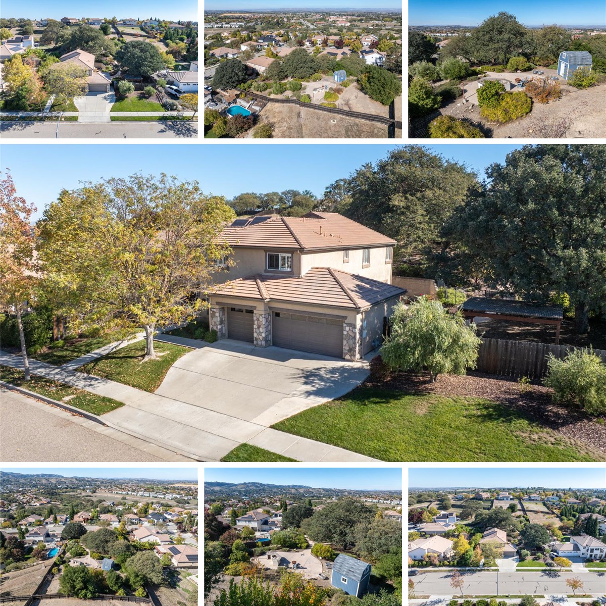 Beautifully situated in Montebello Oaks near open space and close to charming Paso Robles downtown shops and restaurants, this home captures the essence of relaxed sophistication with panoramic views and timeless farmhouse appeal. A custom hardwood front door opens to inviting interiors that include a separate den or office/artist studio, luxury vinyl flooring, recessed lighting, vaulted ceilings, plantation shutters, and a custom stair railing. The built-in bar with wine storage and refrigerator adds a touch of warmth and entertainment flair. The remodeled kitchen showcases a drop-in farm sink, stainless steel appliance package with double ovens and a five-burner cooktop, a walk-in pantry, and a message center for everyday convenience. The dining room offers built-in cabinets with glass panels, while the family room features a gas fireplace with a natural stone hearth. The powder room’s charming barn door and the indoor laundry room with washer, dryer, and drop-in sink enhance everyday function. The primary suite is a retreat with dual sinks, a large walk-in closet with custom built-ins, a beautifully tiled oversized shower, and a soaking tub. A guest en suite opens to its own veranda, perfect for enjoying morning coffee or evening sunsets. Additional highlights include a three-car garage, tile roof, garden cottage with electrical power, raised vegetable beds, and drought-tolerant landscaping. This exceptional property blends privacy, craftsmanship, and Paso Robles charm in one captivating setting. Call or text Terri Winn (DRE 01070194) of GUIDE Real Estate at (805)-610-0991 for a private viewing.