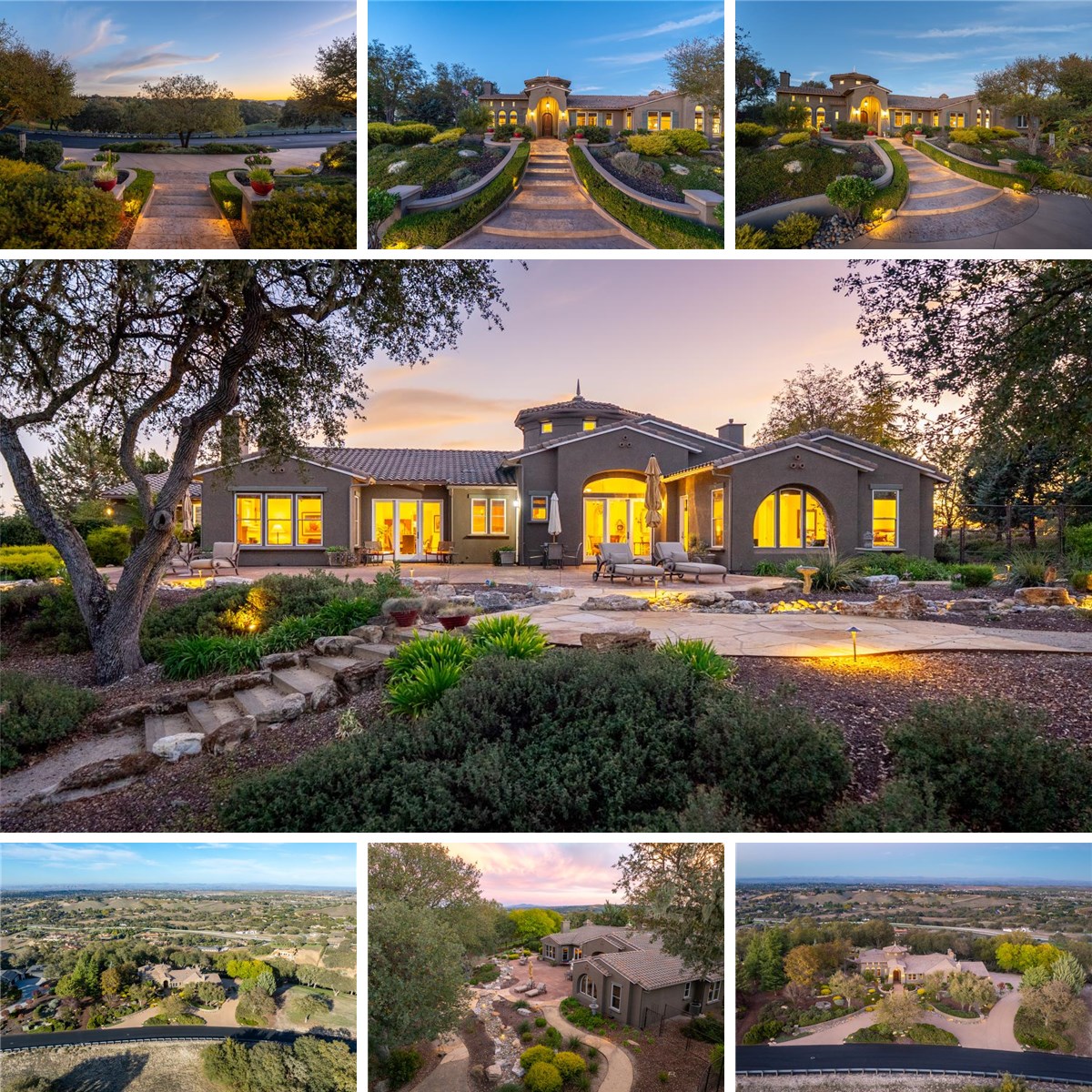 Experience refined Central Coast living in this stunning 4,200± sq. ft. Spanish Colonial estate, perfectly positioned on a private 3± acre parcel within the exclusive gates of Santa Ysabel Ranch. Enjoy sweeping 180° views of vineyards and mountains from nearly every room. This 4-bedroom, 3.5-bath home welcomes you through a grand rotunda entry with soaring ceilings, custom lighting, and travertine flooring throughout. The formal living and dining rooms feature tall Anderson windows framing breathtaking vistas and a cozy gas fireplace. The gourmet kitchen is equipped with GE Monogram stainless appliances, including a six-burner range, double ovens, wine fridge, and granite countertops with maple cabinetry. The adjoining family room and casual dining area create an inviting space for entertaining with seamless indoor-outdoor flow. The spacious primary suite offers privacy, dual walk-in closets, and a luxurious bath with soaking tub and large shower. Additional bedrooms and a flexible office space capture beautiful hillside and sunset views. Outdoor living shines with expansive flagstone patios, multiple sitting areas, and lush landscaping surrounded by heritage oaks - perfect for dining, relaxing, or entertaining under the stars. Additional features include an epoxy-finished 3-car garage with custom cabinetry, Culligan water system, ADT security, and custom lighting throughout. Santa Ysabel Ranch offers 24/7 gated security, walking trails, tennis courts, and a serene lake setting - an unparalleled blend of luxury, privacy, and natural beauty.