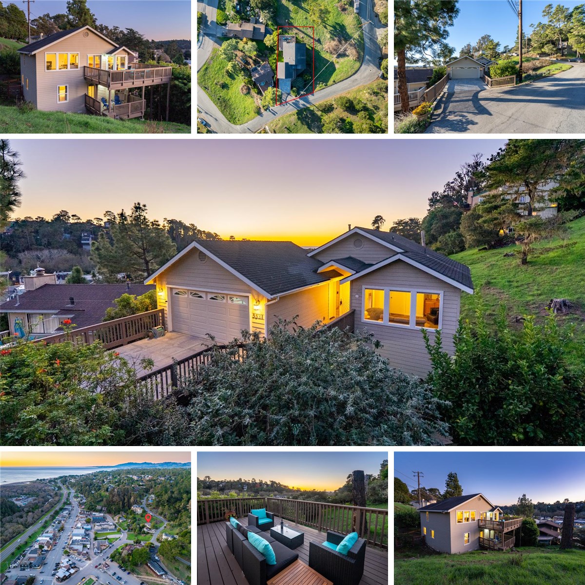 Just a short stroll from Cambria’s beloved West Village, this inviting 4 bedroom, 2.5 bath home offers the perfect blend of coastal charm, comfort, and walkable convenience. Set slightly above town, the home is elevated just enough to capture beautiful views of Cambria, the surrounding hills, and even a distant glimpse of the ocean. As you step inside, you’re welcomed by an abundance of windows that fill the main living areas with natural light, creating a cheerful and warm atmosphere. Recent upgrades, including luxury vinyl flooring through much of the home, add a modern touch while maintaining a relaxed coastal feel. The kitchen is designed for both everyday living and gathering, offering ample cabinetry and counter space, a breakfast bar, and an easy flow into the dining and family room, where a gas fireplace anchors the space and invites cozy evenings. Near the entry, a separate living room or den with a barn door provides flexibility for quiet moments, guests, or a home office. Both the guest bath and primary bath have been beautifully remodeled, and a versatile bonus room on the lower level offers endless possibilities as a fifth bedroom, media room, or workspace. The primary suite feels like a private retreat, complete with dual vanities, a spacious shower, a charming claw-foot tub, and access to its own deck—perfect for morning coffee. Outdoor living continues with a large view deck off the main living area, ideal for entertaining or simply taking in the evening sunsets, as well as a separate, private patio in a fenced yard with mature trees and a garden area. A finished two-car garage and laundry hookups on both levels add convenience, making this home as functional as it is welcoming—a true Cambria gem ready to be enjoyed.