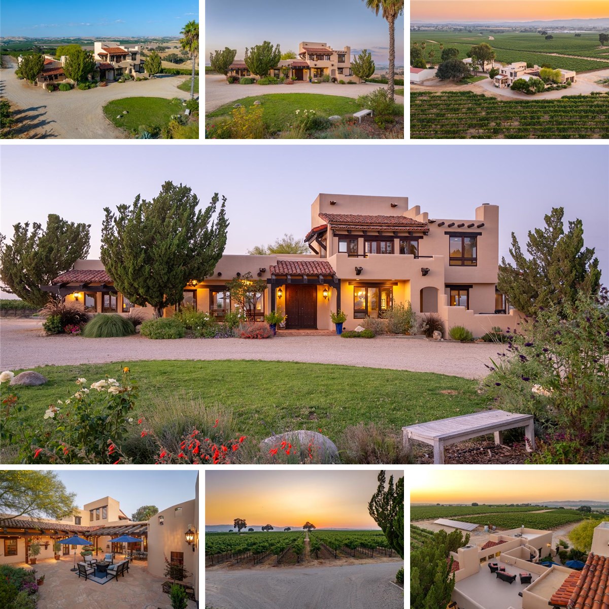 Wine country estate set across 52± acres in the heart of the Paso Robles AVA, commanding unobstructed views over 28.5± planted acres of Cabernet Sauvignon and expansive sunset horizons. The 3,869± sq. ft. custom residence is thoughtfully positioned to capture the surrounding vineyard vistas from nearly every room. A dramatic entry introduces Travertine flooring, exposed beams, and walls of windows that frame the landscape beyond. The open-concept living and dining areas transition seamlessly into a beautifully appointed kitchen designed for entertaining, featuring custom native black walnut cabinetry, a Viking 6-burner range with double ovens, under-counter microwave, Sub-Zero refrigerator, granite island, and quartz countertops. A casual dining area offers direct patio access, blending indoor and outdoor living. The primary suite serves as a refined retreat with recently updated Travertine flooring, new carpet and lighting, radiant heated floors, soaking tub, custom vanity, and frameless glass shower. Additional interior highlights include a dedicated office, art gallery hallway, wine cellar, and private outdoor patio with rooftop seating designed to embrace the panoramic setting. Equestrian amenities include a horse barn with two 12x12 stalls, attached one-bedroom casita suite, and approximately 4± acres of fenced horse pastures. A separate shop building with roll-up doors provides additional functionality for ranch operations. The property is supported by both agricultural and domestic wells, a solar array powering the vineyard and ranch improvements, and solar-operated entry gates. Enrolled in the Williamson Act, the estate benefits from reduced property taxes. Surrounded in every direction by vineyard rows and defined by architectural character, this Paso Robles estate represents the rare convergence of wine country production, equestrian infrastructure, and elevated living.